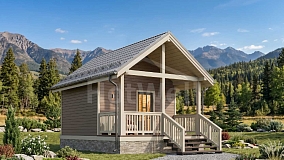 Строительство: методом Pre-Cut (предварительный заводской раскрой СИП панелей и пиломатериалов по проекту). На участке Заказчика быстро и качественно выполняется монтаж дома из готовых деталей.
